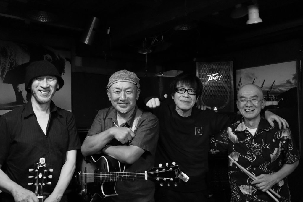 たきやまこと(Vo/Gt) 渡邉 隆司(Ba) 柳澤 幸男(Per/Vo) 加藤 久志(Gt)
